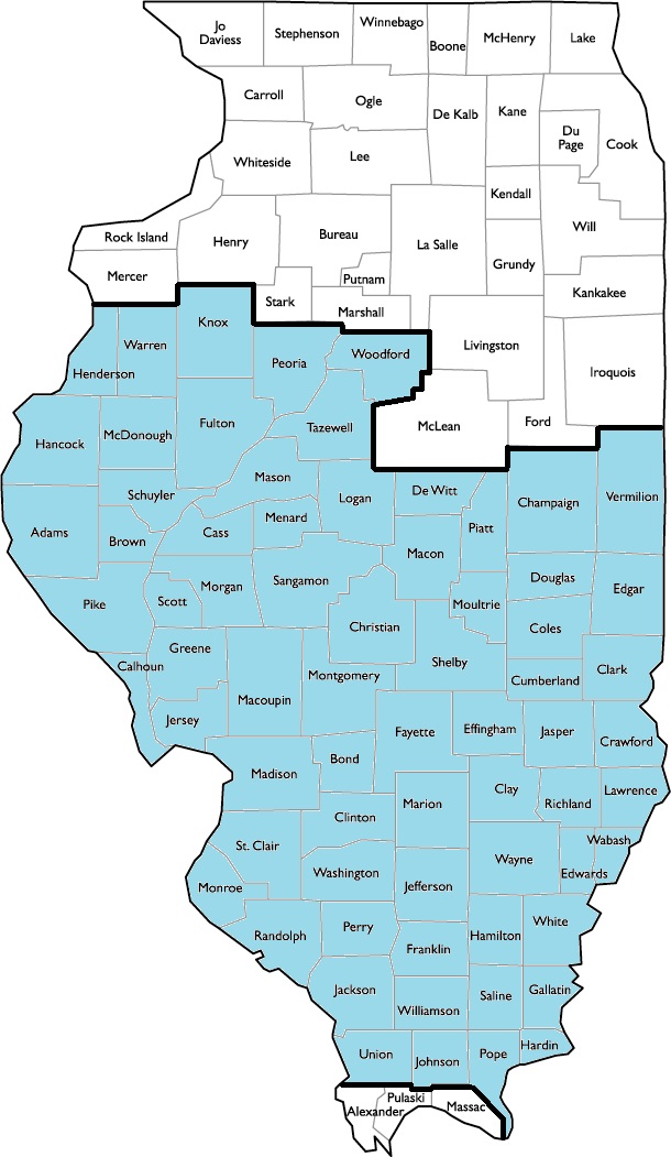 The colored map to the right illustrates counties where Heartland Mutual can write insurance.